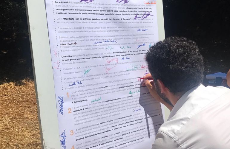 Il progetto “ARCO” ha origine in Sardegna, dove si sta sperimentando già da un anno la figura del Community Manager come attivatore di processi e di potenziale inespresso nei piccoli centri a rischio spopolamento e di nuove azioni di cittadinanza attiva. ARCO sta consentendo a 100 giovani di cinque piccoli paesi di altrettante regioni d’Italia – Condove (Piemonte), Genazzano (Lazio), Petruro Irpino (Campania), Tiggiano (Puglia) e Seneghe (Sardegna) – di formarsi su attivismo giovanile per lo sviluppo locale seguendo il modello del Community Management, di scambiare competenze e di strutturare forme di collaborazione tra amministrazioni comunali e giovani. Grazie ai risultati maturati attraverso la prima parte di questo percorso, l’Amministrazione Comunale di Seneghe, commissariata da ottobre per mancanza di un candidato sindaco alle ultime elezioni amministrative, ha deliberato di avviare un percorso di co-progettazione delle politiche giovanili, che ha contribuito in maniera decisiva alla nascita del “Manifesto”.