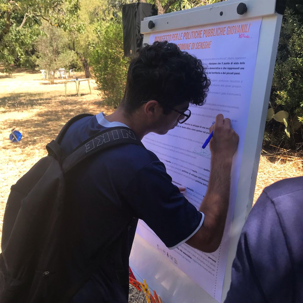 I giovani di Seneghe hanno presentato pubblicamente il loro “Manifesto” alla presenza di oltre cinquanta partecipanti delle istituzioni locali, di molti amministratori di Comuni sardi, di funzionari della Regione Sardegna, di associazioni, di molti giovani di altri paesi dell’isola e di enti che operano per lo sviluppo territoriale, guidando una riflessione sull’importanza del protagonismo giovanile e chiamando i presenti alla sottoscrizione pubblica del documento.