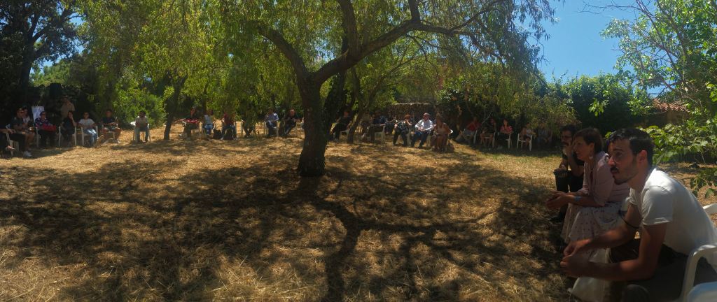 A Belvì, capitale dell’omonima Barbagia, il progetto “Bir’e sentimentos” – coordinato da Marco Peri – prende le mosse da un progetto di residenza artistica che la compagnia teatrale Antas ha elaborato insieme alle donne del coro “Stella splendens”, per una rappresentazione comunitaria di condivisione di poesia dal titolo “Tavoli poetici” a cui ho assistito il 4 luglio lungo le vie del bel centro storico.